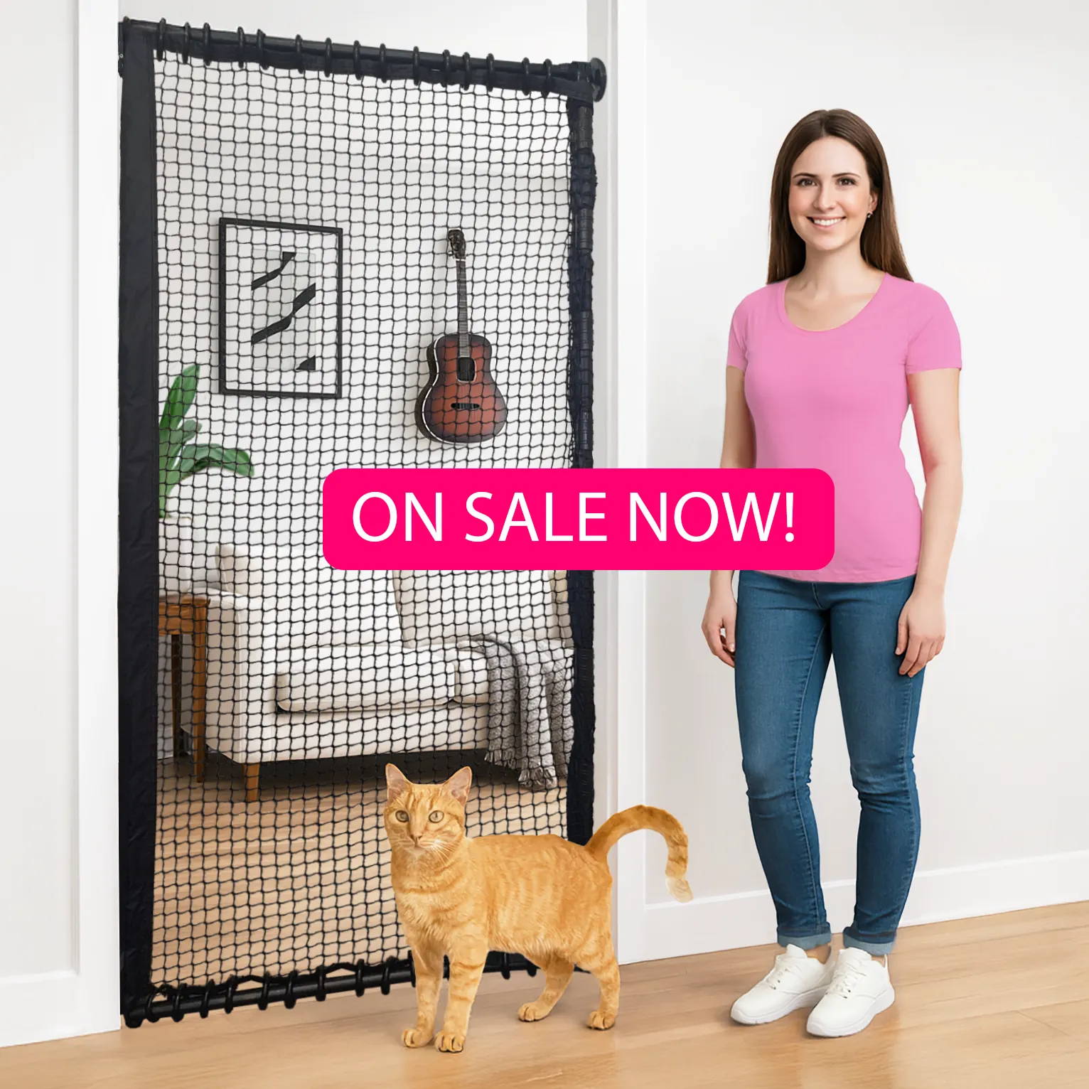 Low visibility catio netting that's tough + weather-proof, creating a discrete yet strong DIY catio outdoor cat enclosure for your fur-baby.