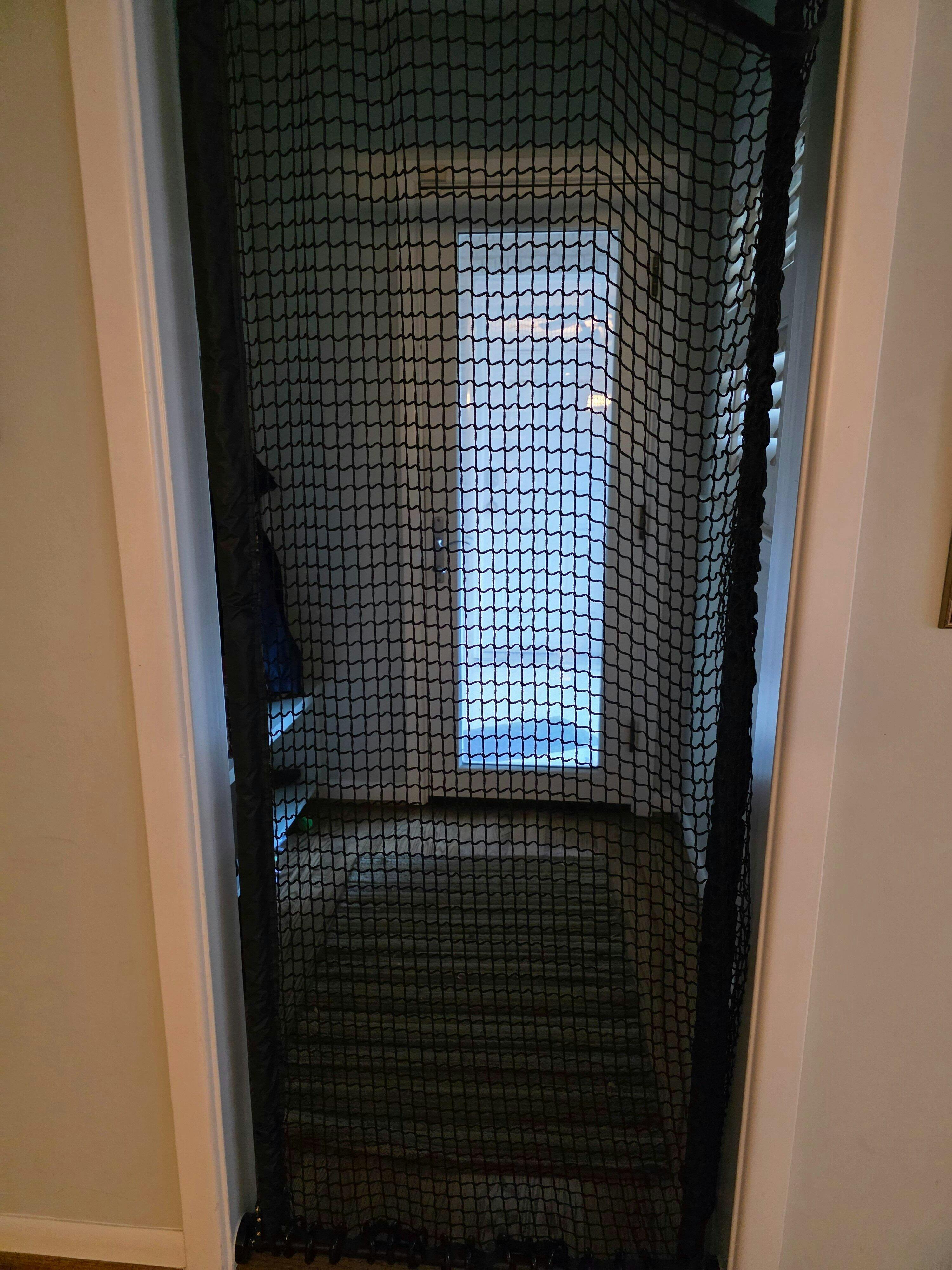 * Appearance. The netting looks more inviting than a tall metal gate. I don't want the entrance into my living room to look like a dungeon.